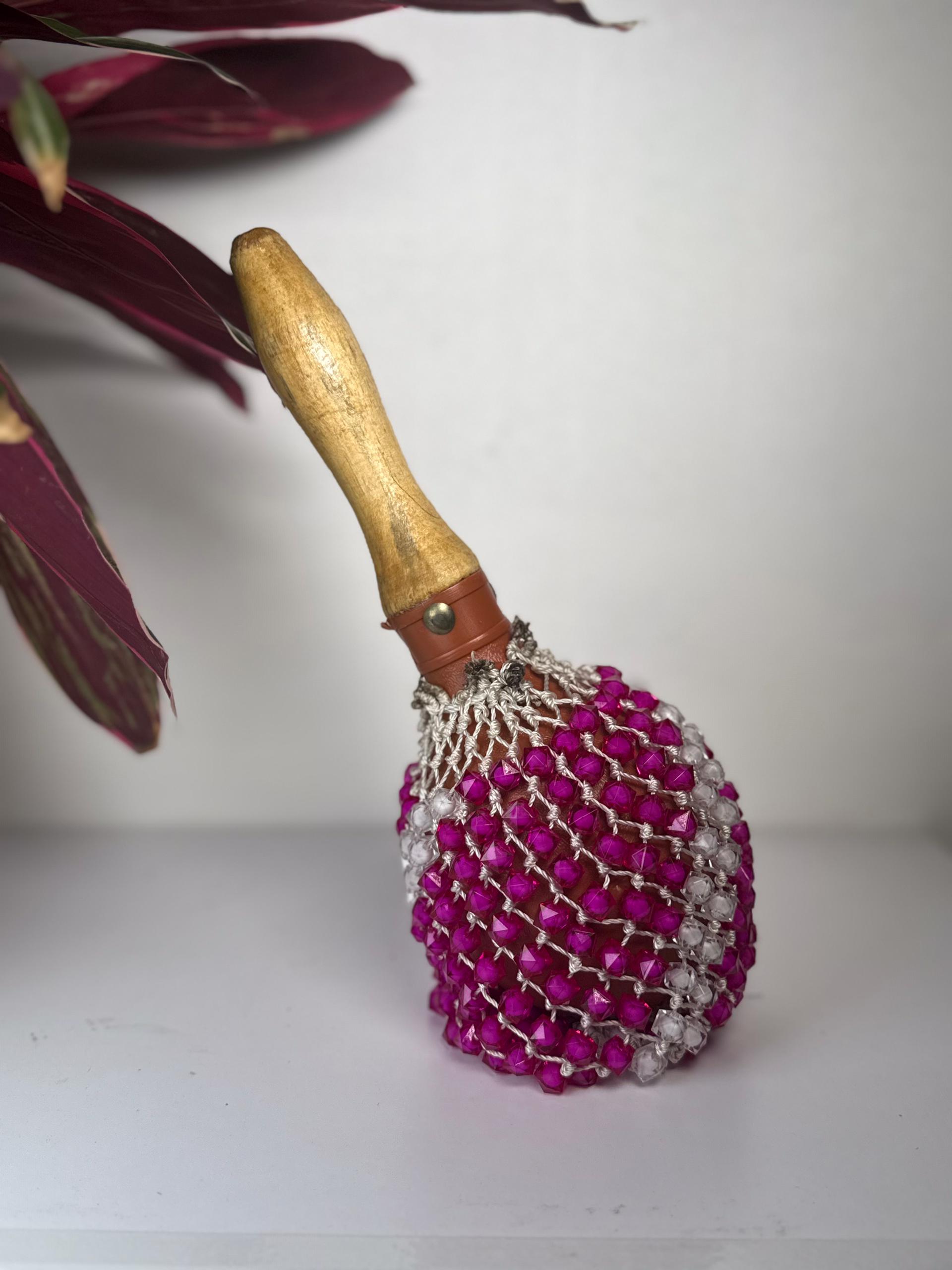 This Sekere is a classic African percussion instrument, handcrafted with care and tradition. It features a sturdy, polished wooden handle and intricately woven beads that add both beauty and rhythm. When played, it produces bright, vibrant tones—perfect for ceremonies, performances, and everyday musical expression. A true embodiment of African artistry and sound.