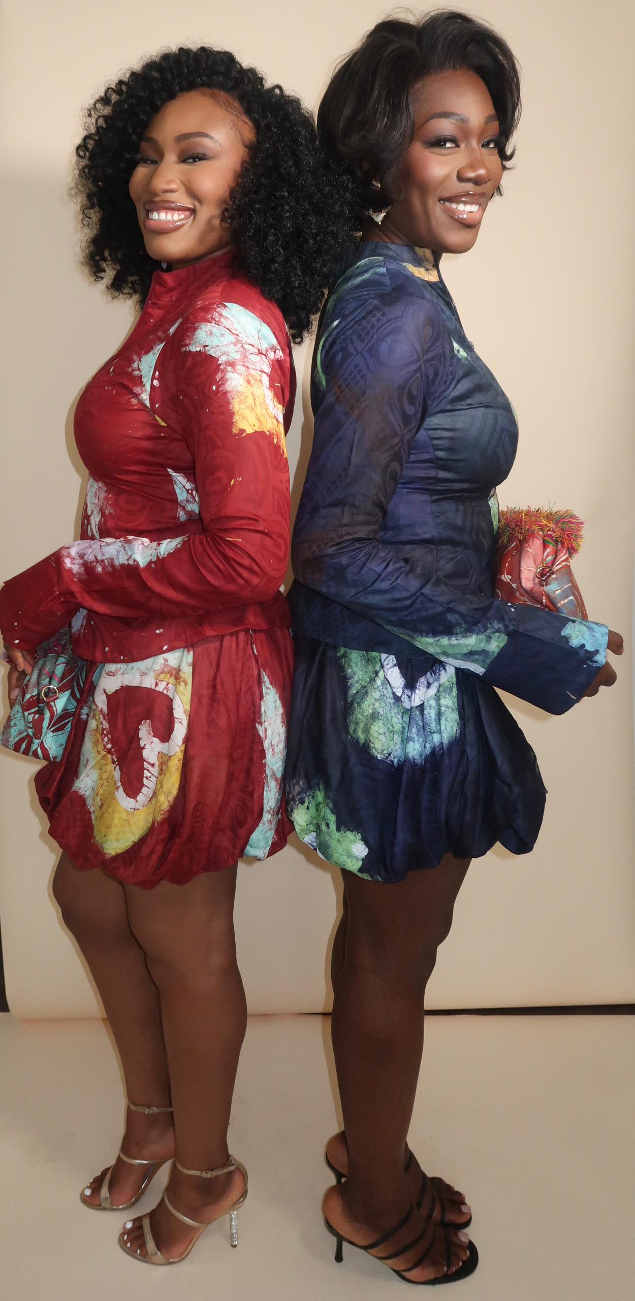 Vibrant and playful, the Tanna set features a fitted top paired with a matching mini bubble skirt in bold Adire prints. A standout piece for making a stylish statement.